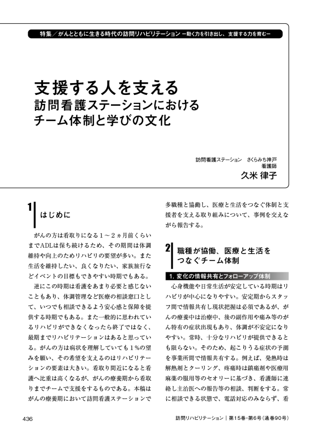がんとともに生きる時代の訪問リハビリテーション〜動く力を引き出し、支援する力を育む〜