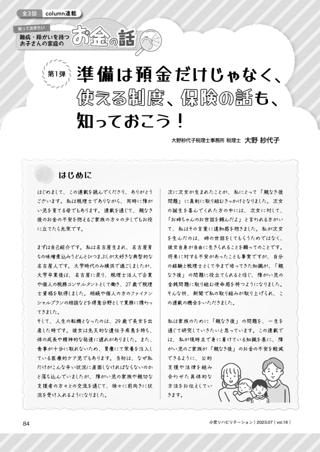 〇知っておきたい 難病・障がいを持つお子さんの家庭のお金の話1
